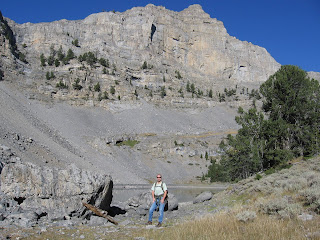 I was hoping for another 2-fer weekend, because I've had three in a row and because I'm making up for a late mountaineering season. The goal today (9/27/09) was South Wet Creek Peak and Wet Creek Peak in the east end of the Lost River Range, accessed via Pass Creek summit. So with that in mind I asked a friend, Bryan, if he'd like to join me. He had done Mt. Borah a few times many years ago (and as I would find out this day, he hiked 13 miles the day before, geez). Well for a nice, introductory, non-Borah mountaineering experience, I probably couldn't have picked worse....10 miles round trip, and 4,100 elevation gain over 5 miles...but I have a tendency to not look at the "details" until after the climb. Regardless, having been in the basin two weeks before, I knew it could be a long approach, long day. So we took off on an early start, in crisp morning air, under a clear sky that promised to stay with us all day.